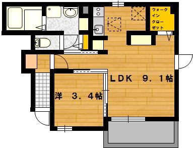 部屋の広さ LDK9.1帖・洋3.4帖 対象階数 2階建 1階