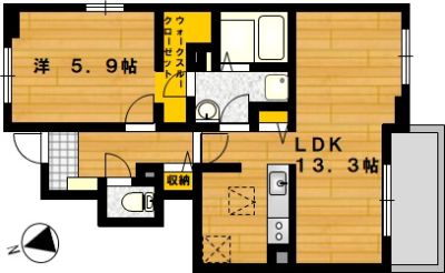 部屋の広さ LDK13.3帖・洋5.9帖 対象階数 2階建 1階