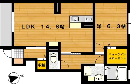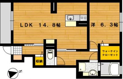 部屋の広さ LDK14.8帖・洋6.3帖 対象階数 2階建 1階