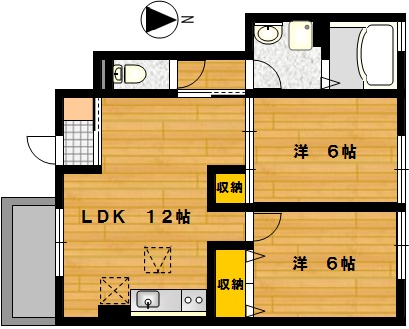 部屋の広さ LDK12帖・洋6帖×2 対象階数 2階建 1階