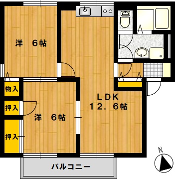 部屋の広さ LDK12.6帖・洋6帖×2 対象階数 2階建 1階