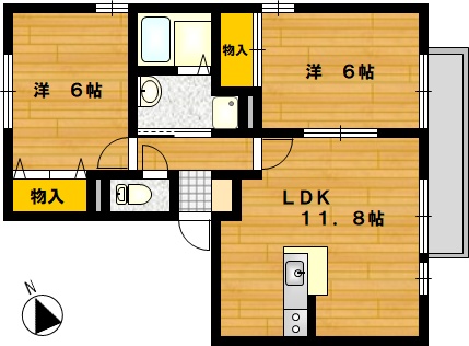 部屋の広さ | LDK11.8帖・洋6帖×2 | 対象階数 | 2階建 2階 | |