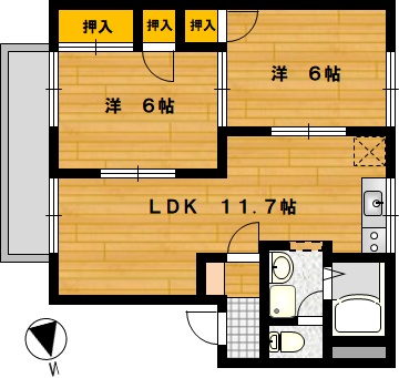 部屋の広さ | LDK11.75帖・洋6帖×2 | 対象階数 | 2階建 2階 | |