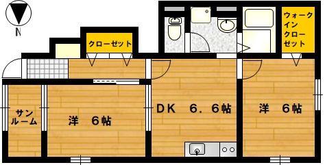部屋の広さ 洋6帖×2・DK6.6帖 対象階数 2階建 1階