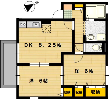 部屋の広さ | DK8.2帖・洋6帖×2 | 対象階数 | 2階建 2階 | |