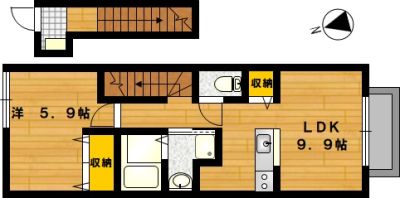 部屋の広さ | 洋5.9帖・LDK9.9帖 | 対象階数 | 2階建 2階 | |