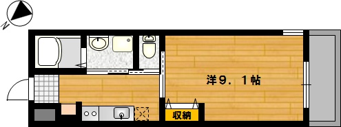 洋室は広めの9.1帖でクローゼットがあります。