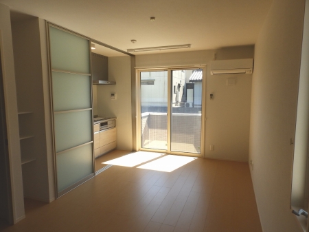キッチンは引き戸で隠せる仕様になっていて、IHクッキングヒーター付きのシステムキッチンです。