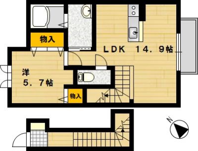 部屋の広さ | LDK14.9帖・洋5.7帖 | 対象階数 | 2階建 2階 | |