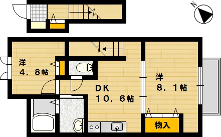 部屋の広さ DK10.6帖・洋8.1帖・洋4.8帖 対象階数 2階建 2階