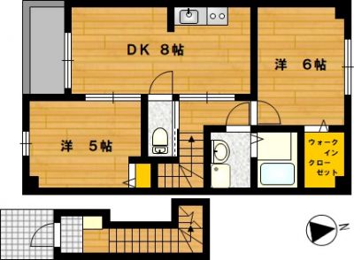 部屋の広さ | 洋5帖・洋6帖・DK8帖 | 対象階数 | 2階建 2階 | |