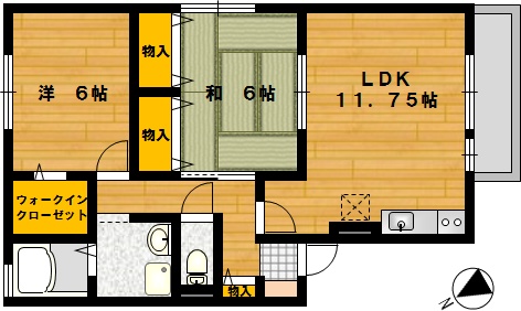 部屋の広さ LDK11.7帖・洋6帖・和6帖 対象階数 2階建 1階