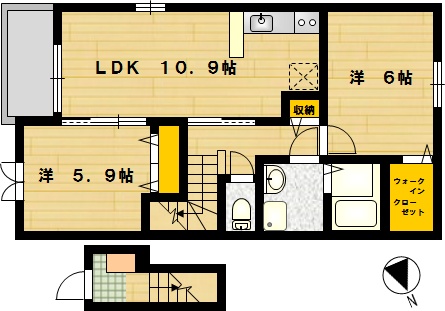 部屋の広さ | LDK10.9帖・洋5.9帖・洋6帖 | 対象階数 | 2階建 2階 | |