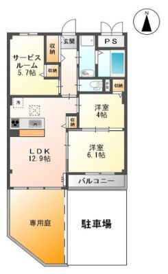 部屋の広さ | LDK12.9帖・洋6.1帖・洋4帖・S5.7帖 | 対象階数 | 3階建 1階 | |