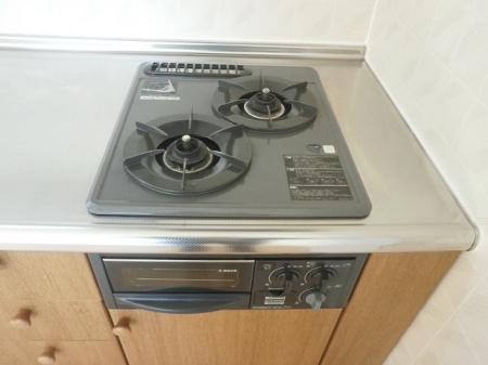 コンロは2口コンロ付のシステムキッチンです。