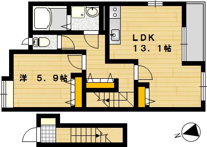 部屋の広さ LDK13.1帖・洋5.9帖 対象階数 2階建 2階