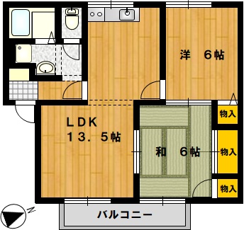 部屋の広さ | 和6帖・洋6帖・LDK13.5帖 | 対象階数 | 2階建 2階 | |