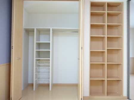 洋室のクローゼットの横には作りつけの棚があり、小物をオシャレに飾ったりしてもいいですし好きなように使ってください。