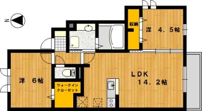 部屋の広さ LDK14.3帖・洋4.5帖・洋6.1帖 対象階数 2階建 1階