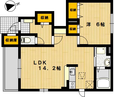 部屋の広さ LDK14.2帖・洋6帖 対象階数 2階建 1階
