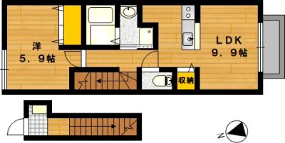 部屋の広さ | 洋5.9帖・LDK9.9帖 | 対象階数 | 2階建 2階 | |