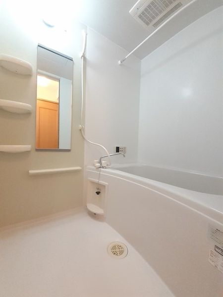 対面キッチン , 床下収納 , 追焚き機能 , 浴室乾燥機 , 洗髪洗面化粧台 , 水洗トイレ(洋) , 温水洗浄暖房便座 , 給湯 ,  エアコン , BSアンテナ , TVモニターホン ,  防犯キー , 室外物置 , 洗濯機置場 , プロパンガス ,