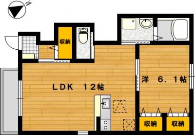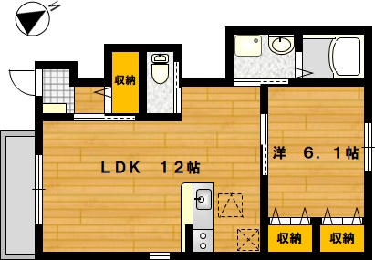 部屋の広さ LDK12帖・洋6.1帖 対象階数 2階建 1階