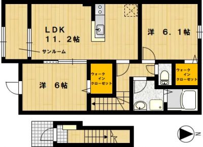 部屋の広さ | 洋6.1帖・洋6帖・LDK11.2帖 | 対象階数 | 2階建 2階 | |