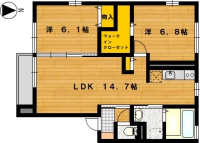 部屋の広さ 洋6.8帖・洋6.1帖・LDK14.7帖 対象階数 2階建 2階
