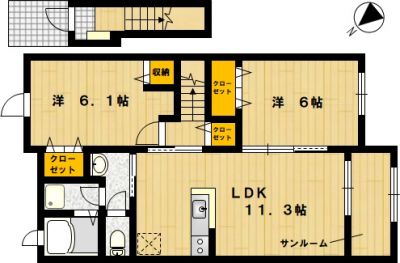部屋の広さ LDK11.3帖・洋6帖・洋6.1帖 対象階数 2階建 2階