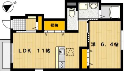 部屋の広さ | 洋6.4帖・LDK11帖 | 対象階数 | 2階建 1階 | |
