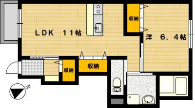 部屋の広さ | 洋6.4帖・LDK11帖 | 対象階数 | 2階建 1階 | |