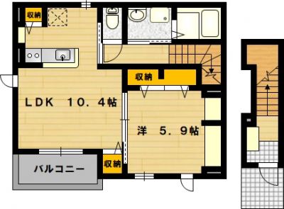 部屋の広さ | 洋5.9帖・LDK10.4帖 | 対象階数 | 2階建 2階 | |