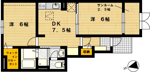 部屋の広さ DK7.5帖・洋6帖×2 対象階数 2階建 1階