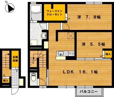 部屋の広さ | LDK16.1帖・洋7.8帖・洋5.5帖 | 対象階数 | 2階建 2階 | |