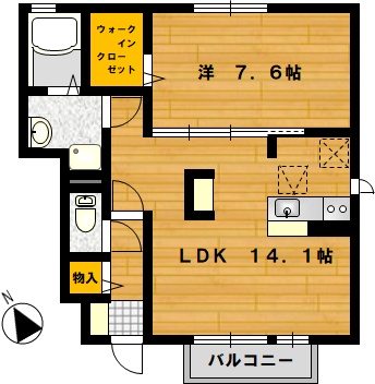 部屋の広さ LDK14帖・洋7.5帖 対象階数 2階建 1階