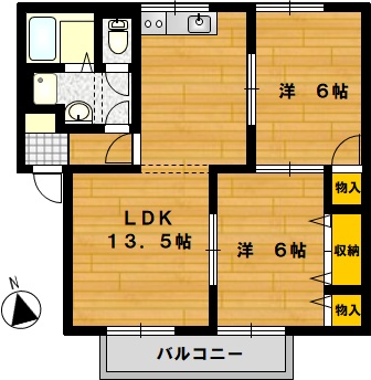 部屋の広さ | 洋6帖×2・LDK13.5帖 | 対象階数 | 2階建 2階 | |