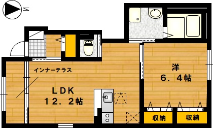 部屋の広さ LDK12.2帖・洋6.4帖 対象階数 2階建 1階