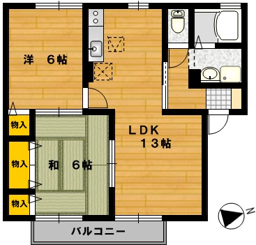 部屋の広さ 和6帖・洋6帖・LDK13帖 対象階数 2階建 2階