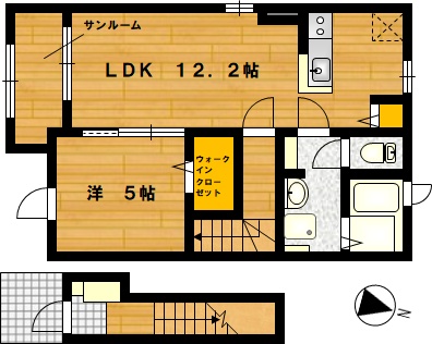 部屋の広さ | LDK12.2帖・洋5帖 | 対象階数 | 2階建 2階 | |