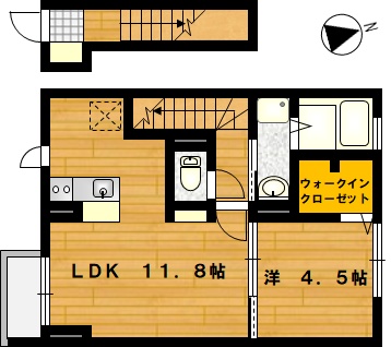 部屋の広さ LDK11.8帖・洋4.5帖 対象階数 2階建 2階