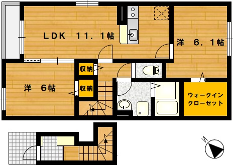 部屋の広さ 洋6.1帖・LDK11.1帖・洋6帖 対象階数 2階建 2階