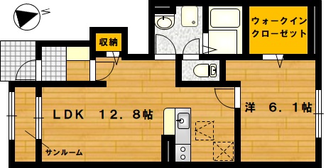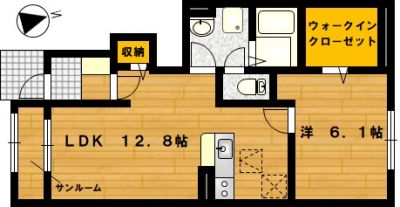 部屋の広さ 洋6.1帖・LDK12.8帖 対象階数 2階建 1階