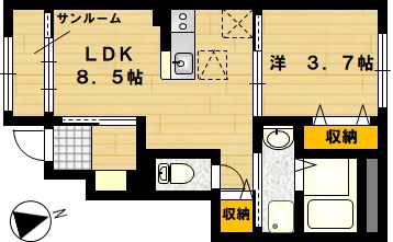 部屋の広さ LDK8.5帖・洋3.7帖 対象階数 2階建 1階