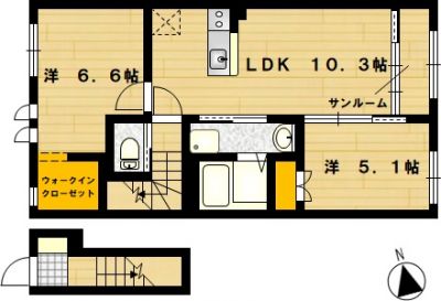 部屋の広さ | LDK10.3帖・洋5.1帖・洋6.6帖 | 対象階数 | 2階建 2階 | |