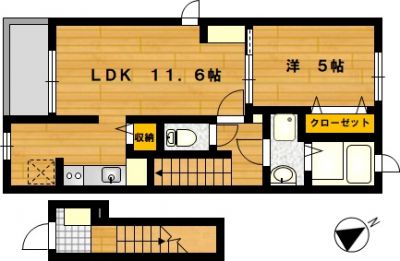 部屋の広さ LDK11.6帖・洋5帖  対象階数 2階建 2階