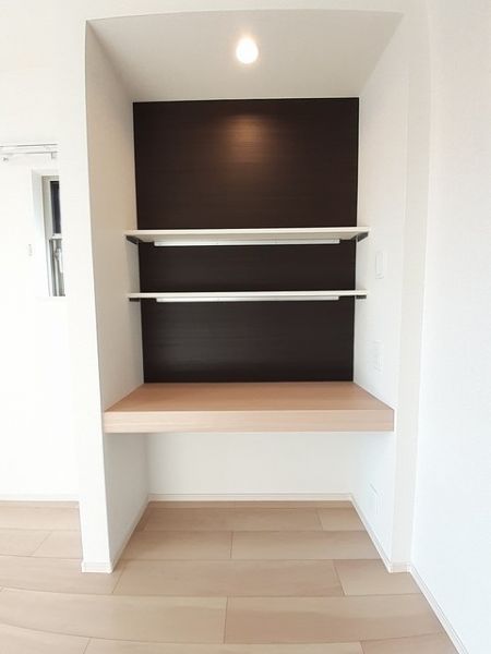 リビングには使い勝手がよさそうな棚も付いています。デスク風にも使えるのではないでしょうか。