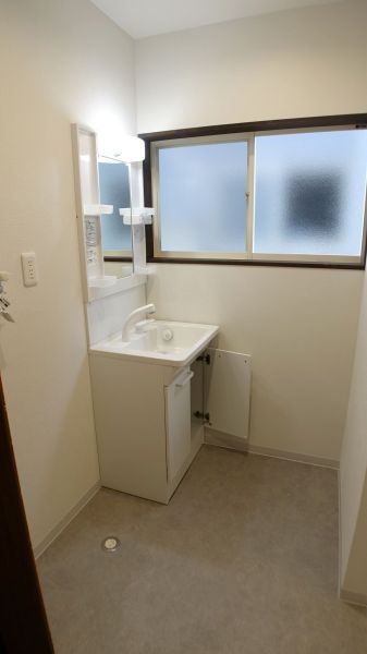 窓があり明るい洗面所 入口ドア新品折戸