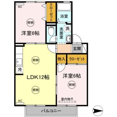 部屋の広さ LDK12帖・洋6帖・和6帖 対象階数 2階建 1階