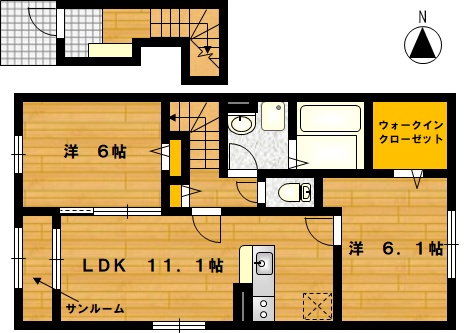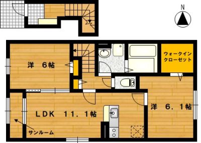 部屋の広さ | LDK11.1帖・洋6.1帖・洋6帖 | 対象階数 | 2階建 2階 | |